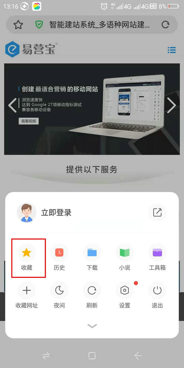 首先,先在浏览器里打开网站,在菜单里点击收藏。