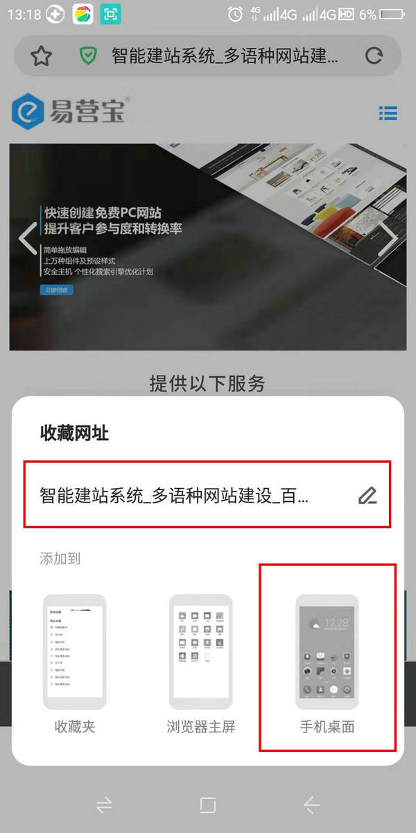 其次在弹出窗里修改名称,并选择“添加手机桌面”。