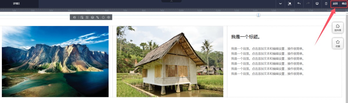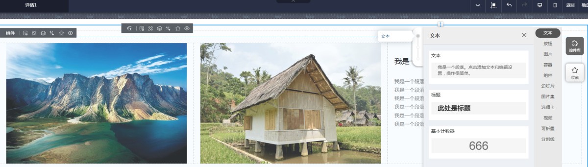 3,使用控件库里的控件,可以自由排版设计。操作方式和UI装修页一样。