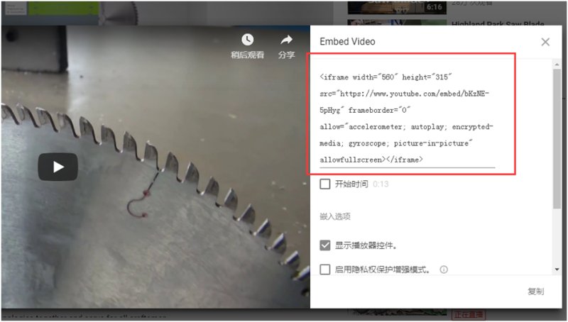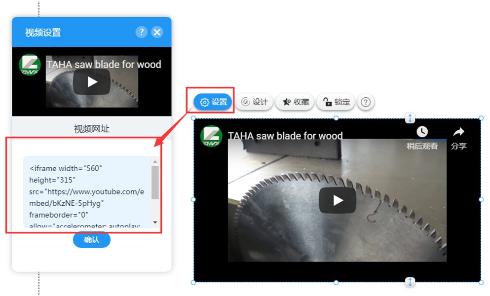 5,讲嵌入代码粘贴到视频设置里即可