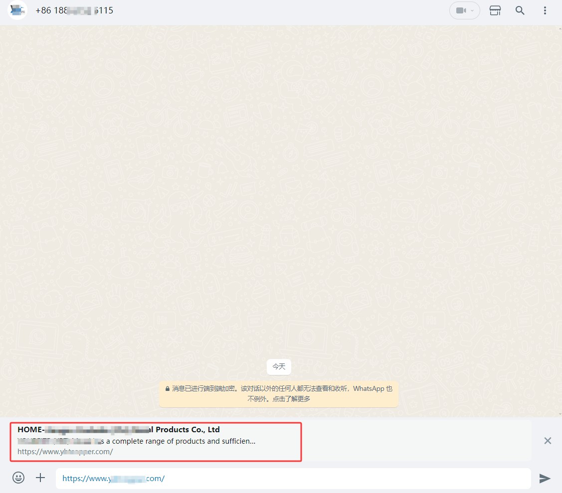 2,这样访客在通过WhatsAp发起咨询时,就可以带着当前页面的链接了。效果如下:
