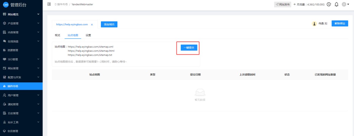 15,在站点地图里,可以一键提交网站地图到Yandex。
