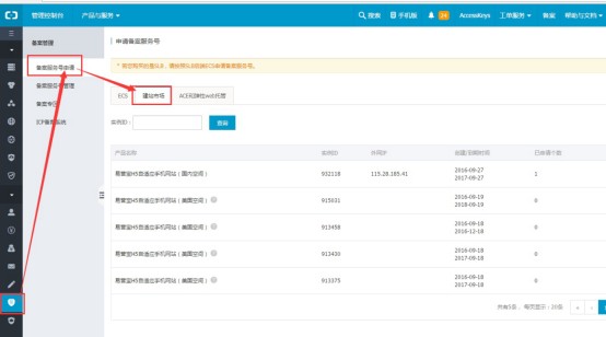 3,申请备案服务号:每购买一个建站市场的产品可以申请一个备案服务号