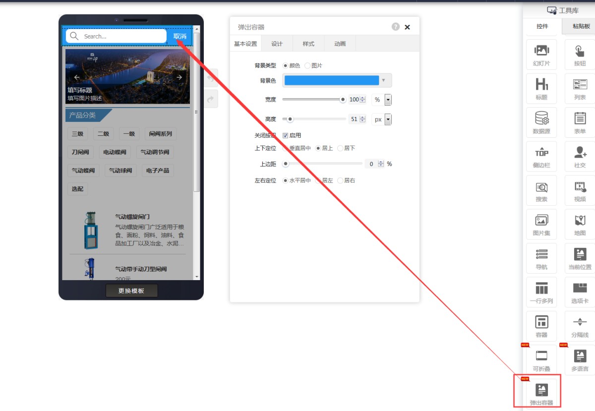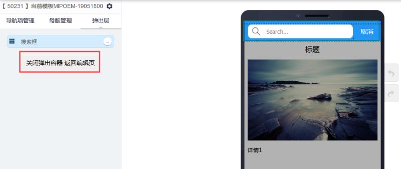 2,添加弹出容器控件,弹出容器的默认样式就是搜索框。