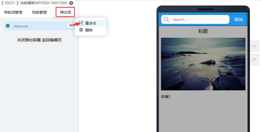 5,修改完弹出层名称后,可将弹出层关闭。