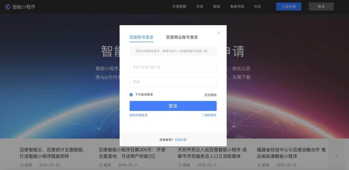 ② 登录/注册百度账号目前支持百度账号及百度商业账号登陆