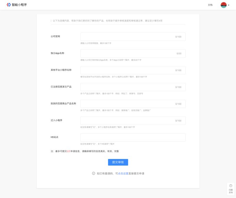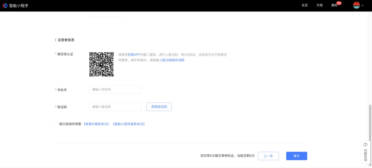 注:每个帐号有 5 次提交审核机会,如 5 次审核均未通过,将不能再次提交。