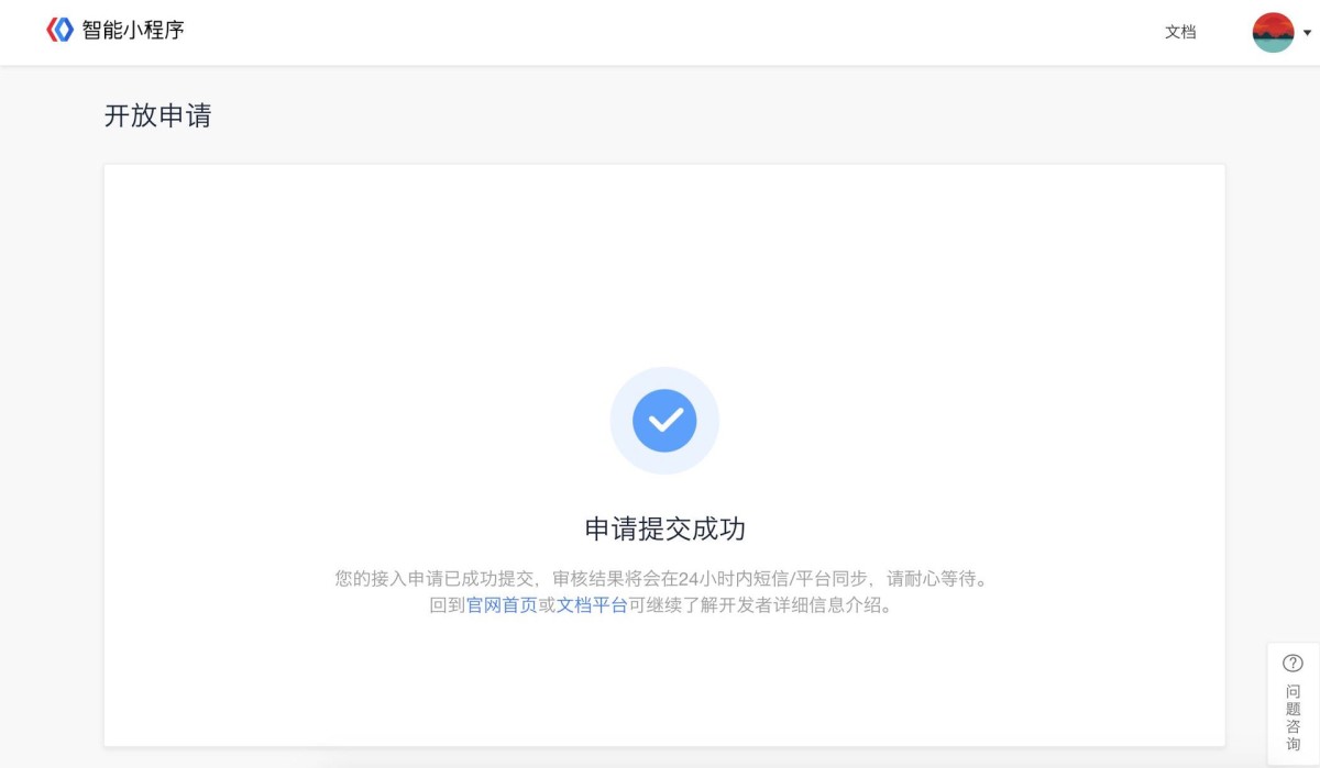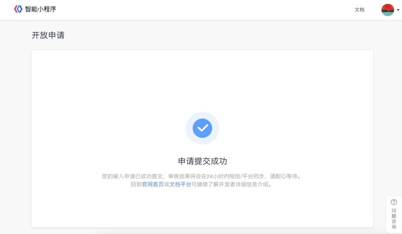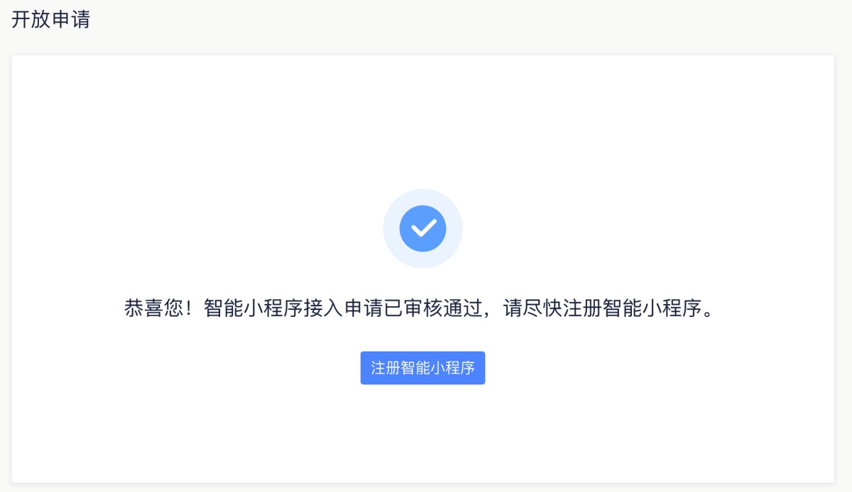 ⑥ 审核通过:入驻申请审核通过后,点击“注册智能小程序”按钮进入下一步。