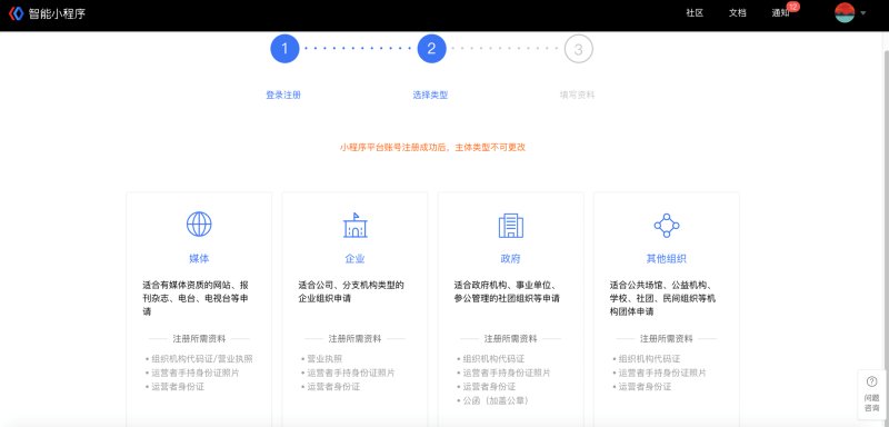 目前支持的主体类型:媒体、企业、政府、其他组织。