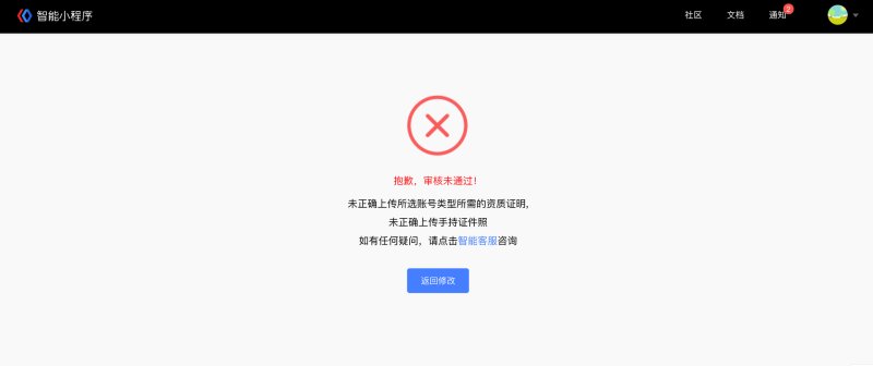 ⑥ 审核被拒绝:请参考拒绝原因点击返回修改后重新提交主体认证信息,如有疑问请咨询客服。