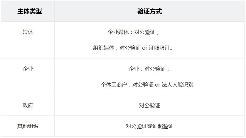 各主体类型对应验证方式