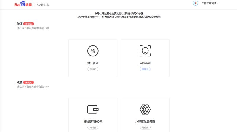 特别说明:该环节主要用于验证主体真实性,为不影响到开发进展,可暂时跳过此步骤直接创建小程序,并在小程序的开发过程中任意时间完成真实性认证即可,真实性认证状态将影响提交代码包及发布上线。
