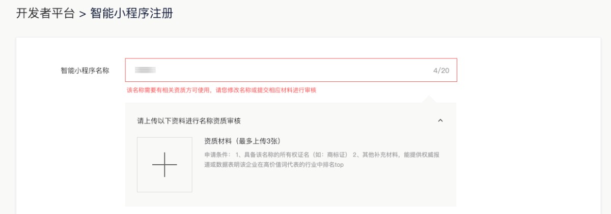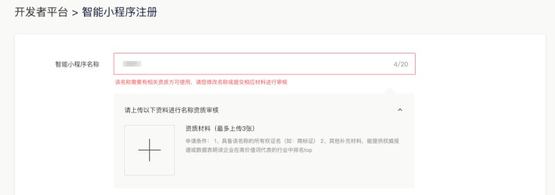 ③ 品牌审核:若填写的智能小程序名称涉及品牌或名称侵权需提交相关资料进行审核。