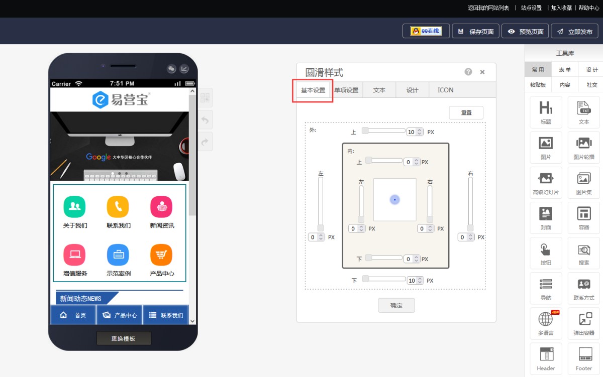 3,在基本设置里,可以调整导航的定位,即上下左右边距。