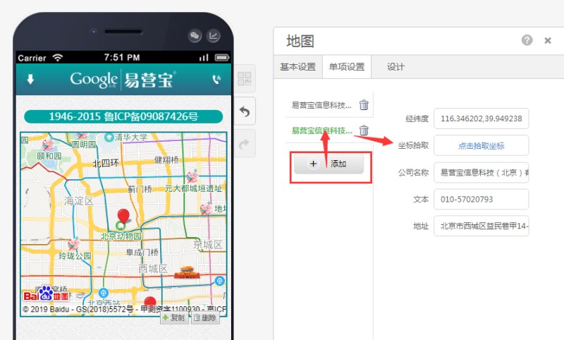 如果需要在同一个城市设置多门店位置,可添加新的地图信息