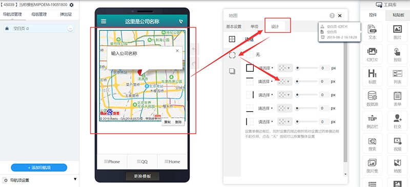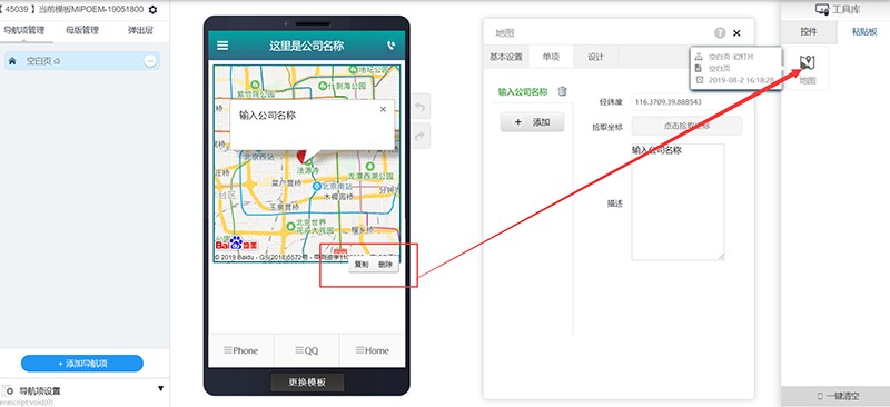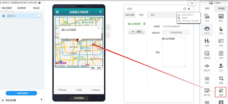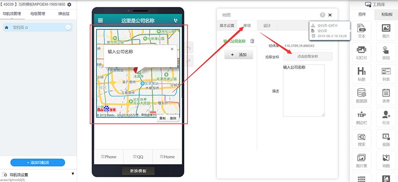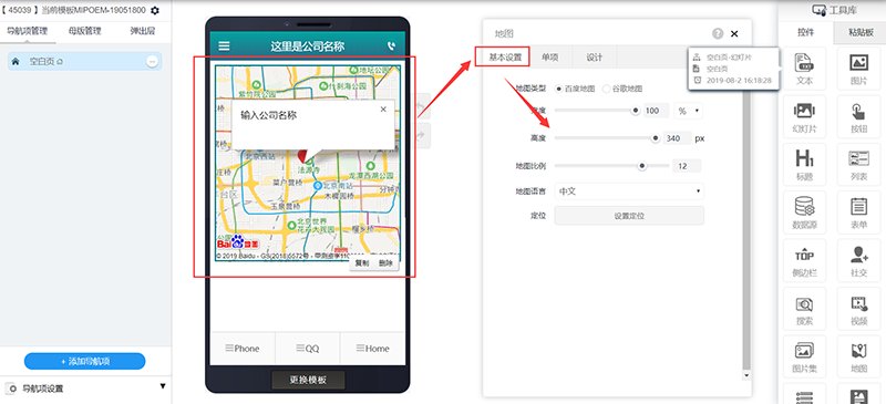 进入网站编辑,在工具库中找到“地图”,并拖拽到编辑页面。