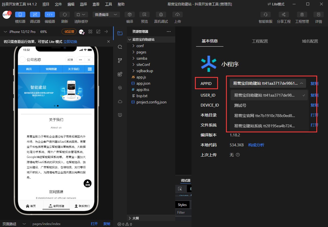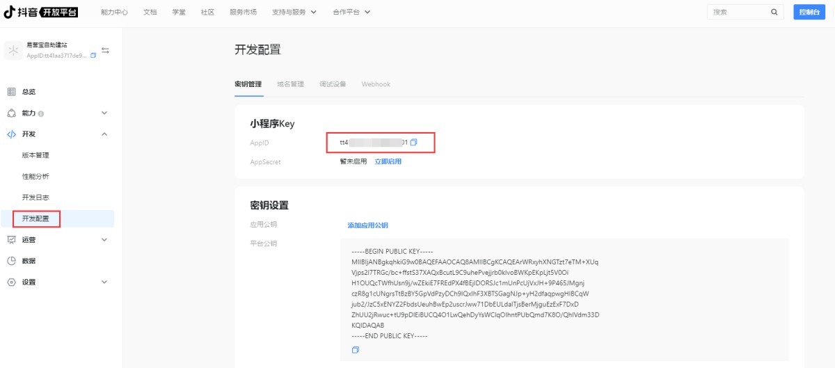 APPID在抖音小程序开发平台查看(参考第4步)