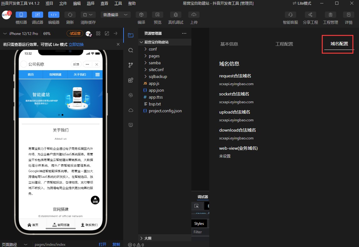 7,在域名配置里检查域名信息是否正确,应该都是xcxapi.eyingbao.com