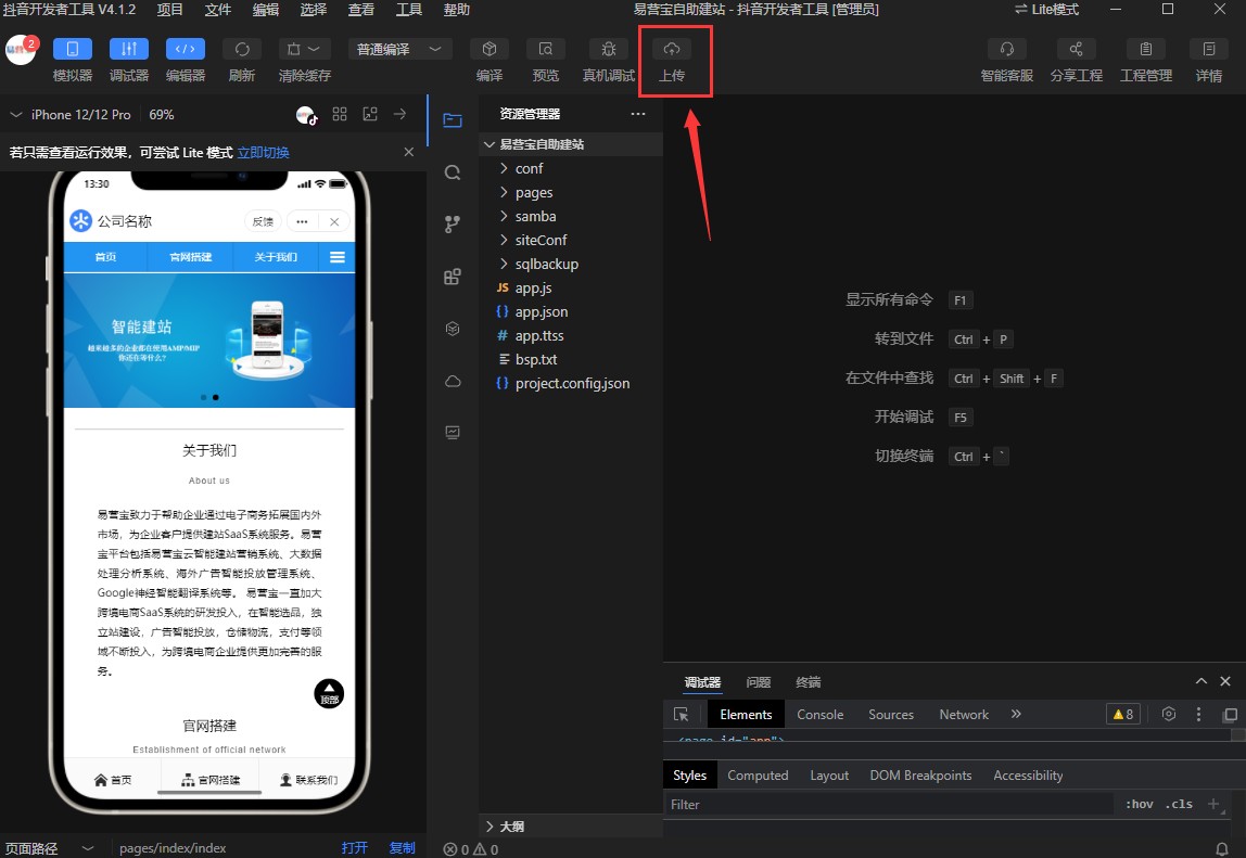 项目目录选择在易营宝平台下载的压缩包,解压后的文件夹。