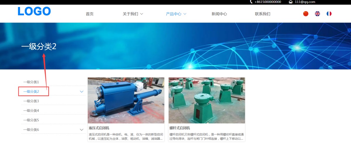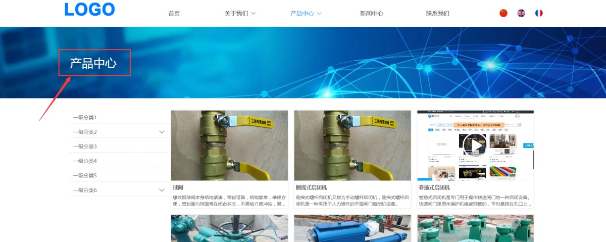 举例:客户进入产品中心页面时,标题显示的是“产品中心”(如下图),如果客户点击了分类1,列表展示分类1的产品时,这个标题显示分类1的名称。