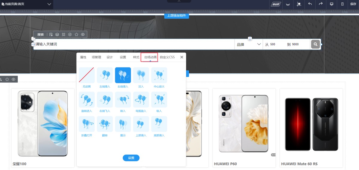 10,在出厂动画里,可是设置设置控件的出厂动画效果。