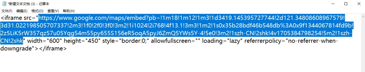 4,将获取到的代码粘贴到TXT文本里,选择复制代码中的链接(下图标蓝的部分)