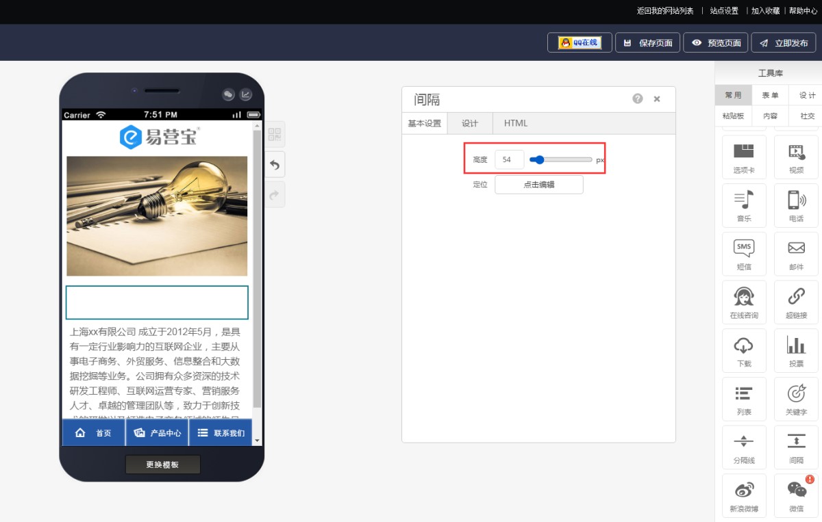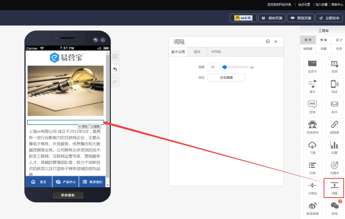 1,在工具库中找到“间隔”控件,并拖入编辑区。