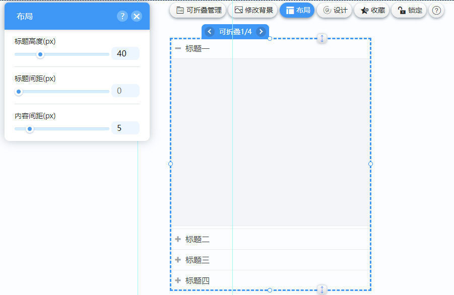 5,布局 属性里,我们可以对标题高度,标题间距及内容间距进行设置
