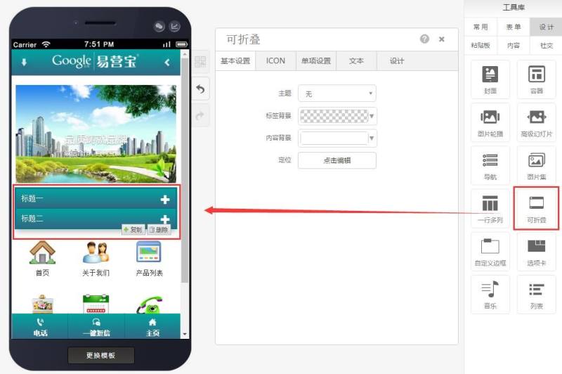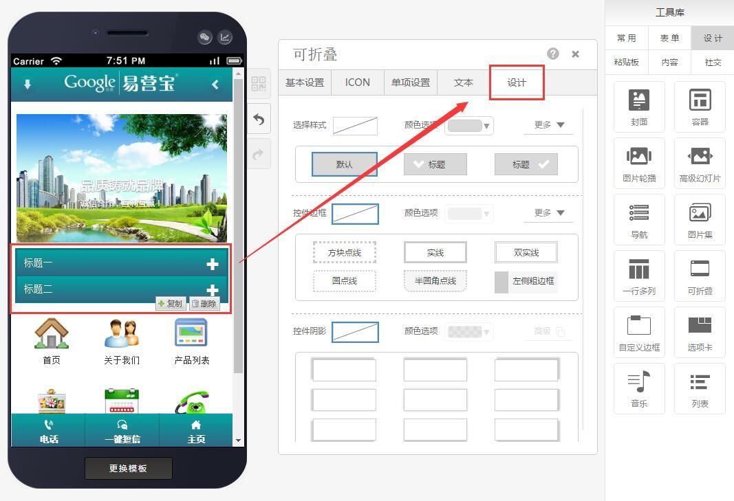 第二步:可根据自己的需求找到设计选项,选择可折叠样式(共有7种样式),如下图: