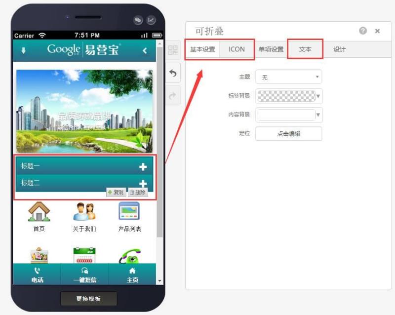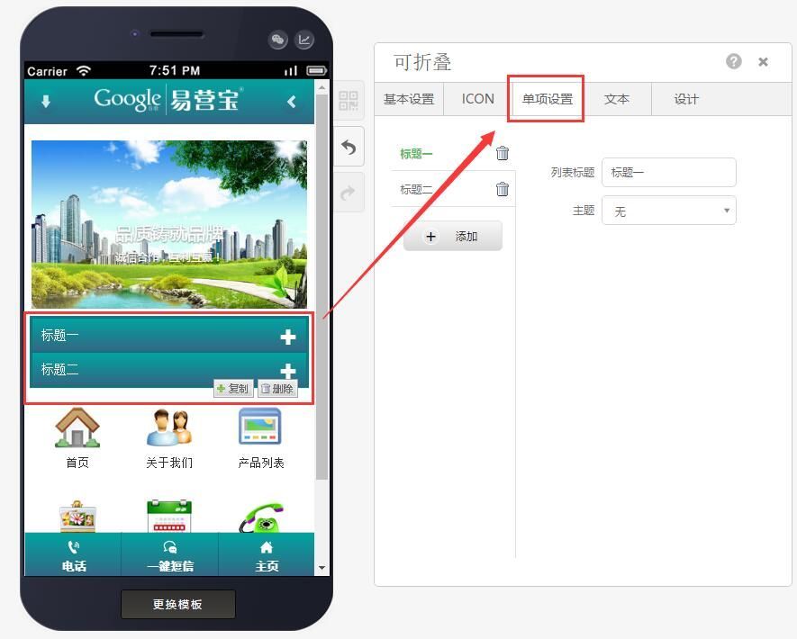 第三步:选择好样式后,可进行单项设置(编辑可折叠标题及主题),如下图: