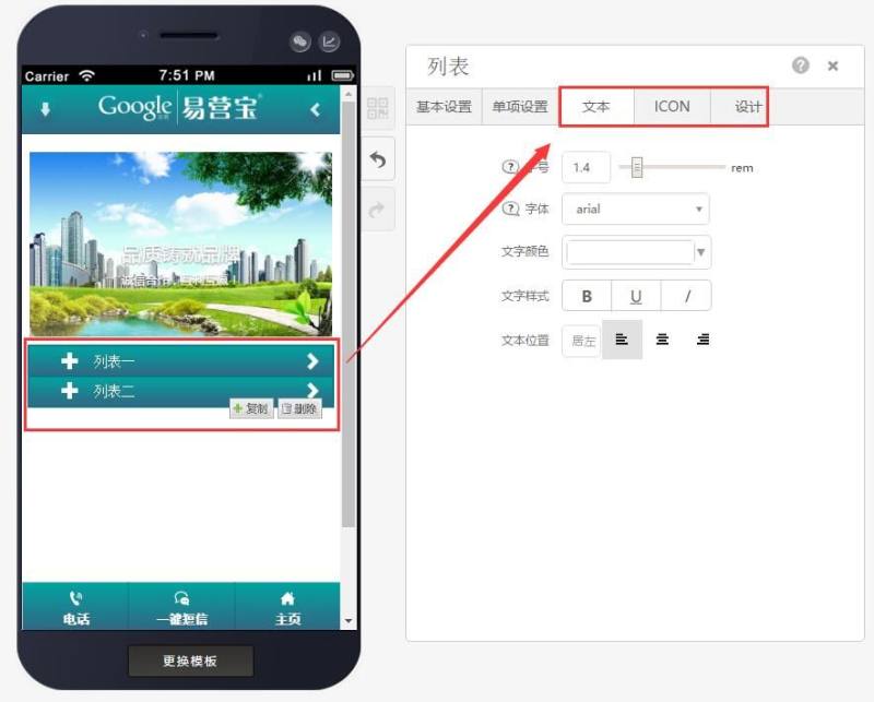 第四步:也可以对文本、icon单独调整大小颜色等, 以及在设计中增加列表控件阴影,如下图: