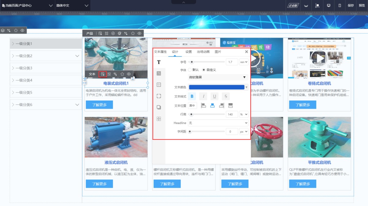 修改第一个产品的标题文本样式后,其他产品的标题会自动同步样式。设置完成后保存即可。
