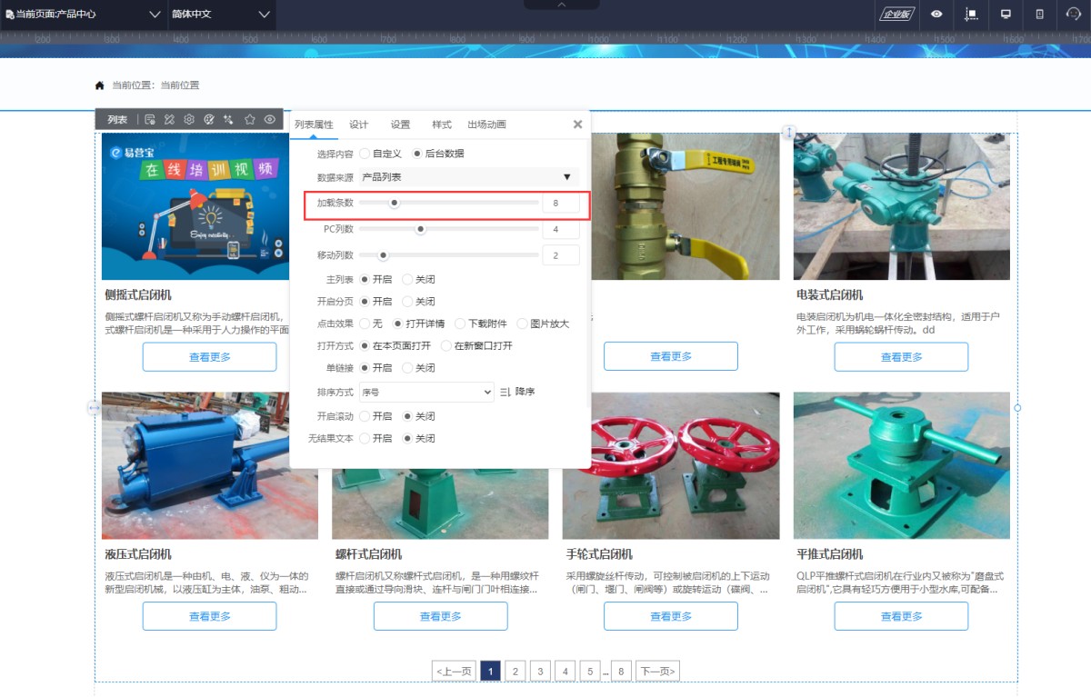 2,如果开启分页后,预览或网站上不显示分页,可以检查一下后台产品/新闻的数量是否多于列表的加载条数,如果后台数据少于或等于加载条数,那一屏就可以把产品/新闻展示完,就不会显示分页。后台产品/新闻增加后,分页会自动显示的。