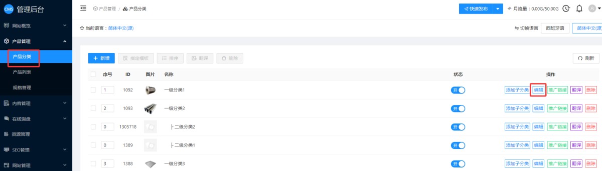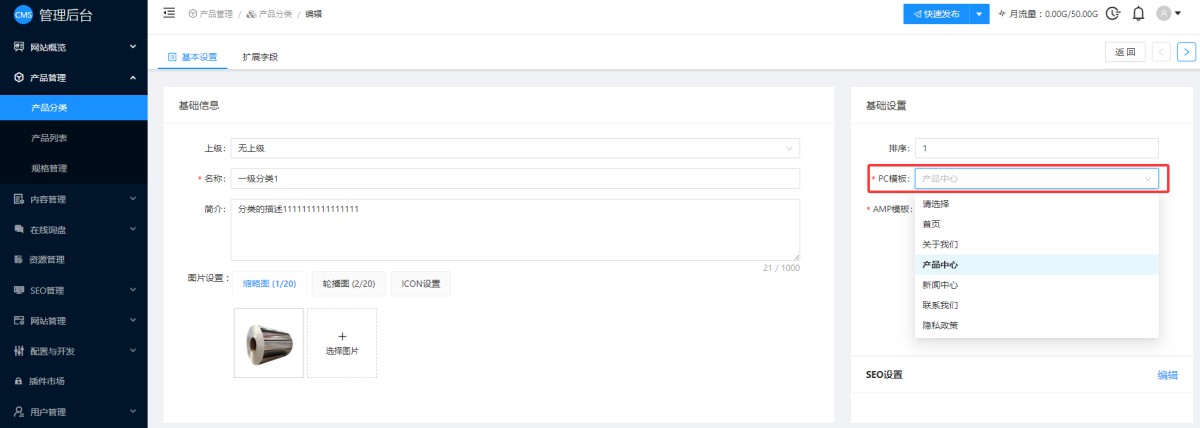 1,检测后台产品分类编辑里,分类的模版是否选择正确。