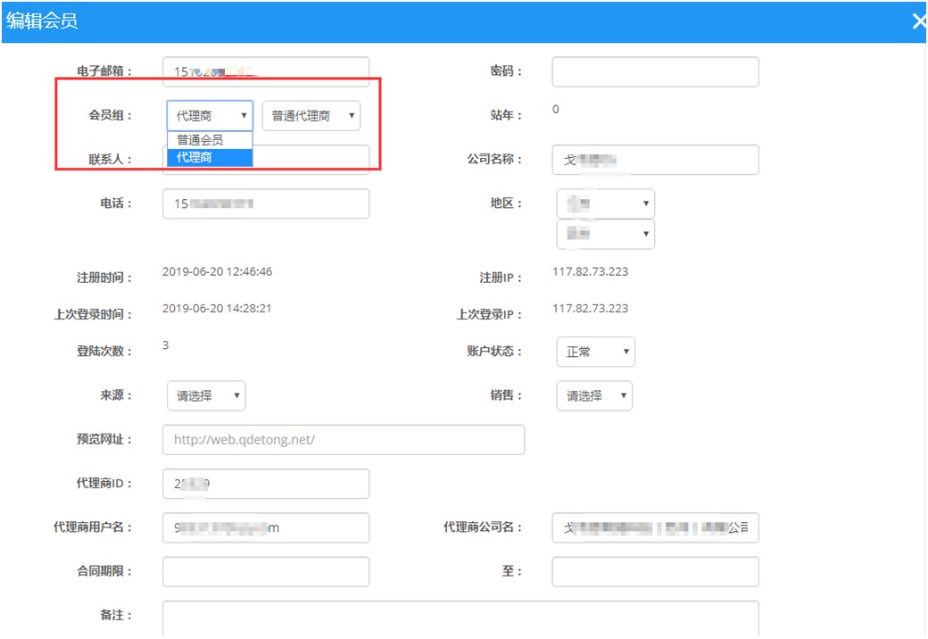 4,如果是代理商,在后面的下拉框里选择代理商的等级。