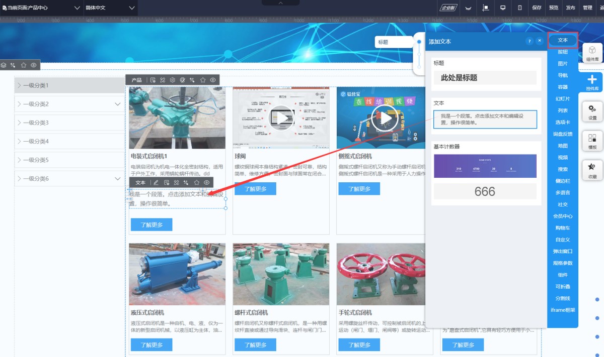 1,从工具库里选择文本控件拖拽添加到列表的第一个产品或新闻里。