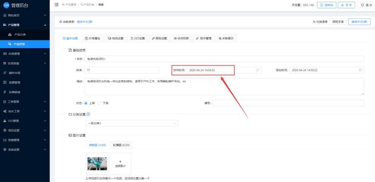 4,列表上调用的发布时间,是后台产品/新闻详情编辑页面里的发布时间,如需修改,可在后台操作。