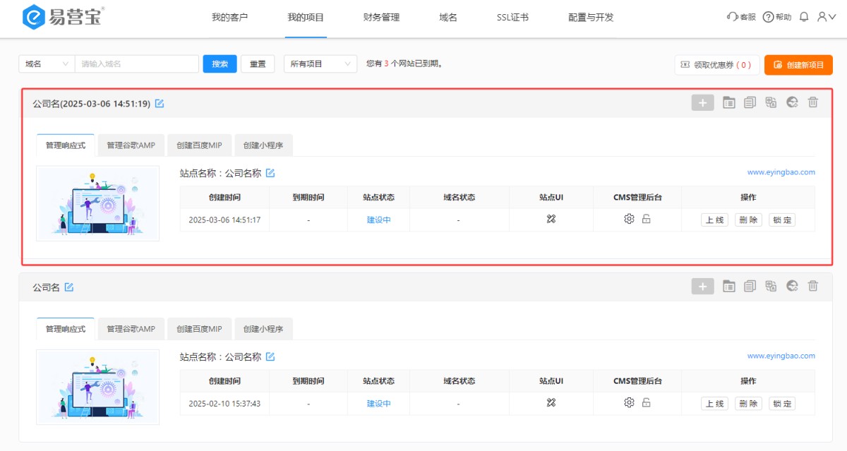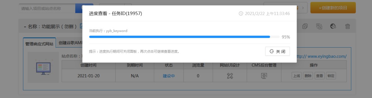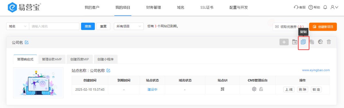 6,复制完成后,会在账号里生成副本。复制出来的新网站与原网站可以各自修改,互不影响。