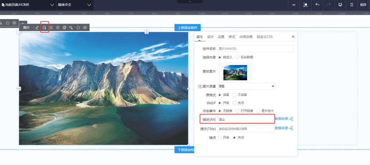 1,图片控件:在图片属性里可以直接设置图片Alt。