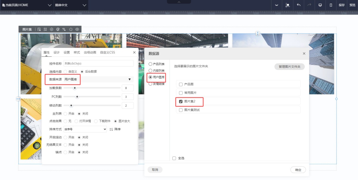 4,图片集:如果图片集是调用后台用户图库里的文件夹(图一),则图片Alt是引用的资源库里的图片名称。可以在后台资源库-图库里修改文件名称(图二)。