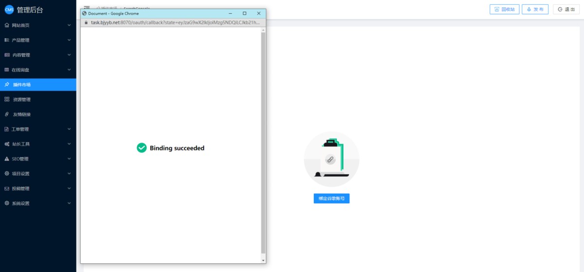 6,绑定成功后,页面会提示“Binding succeeded”。关掉弹窗即可。