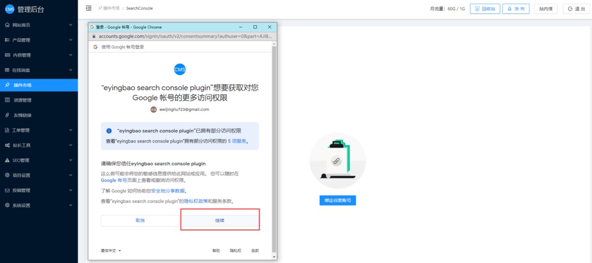 说明:使用Search Console插件需提前注册一个谷歌账号。