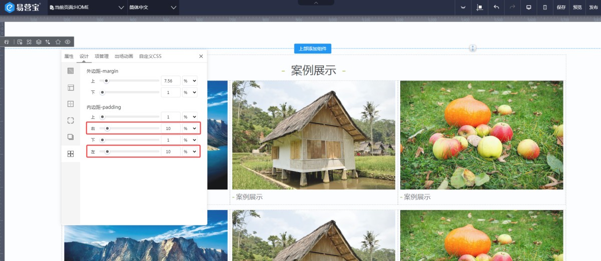 说明:裁切功能仅限最底层组件,如果是组件1里又嵌套了组件2,组件2的间距是不裁切的;组件里的控件间距也不会裁切。