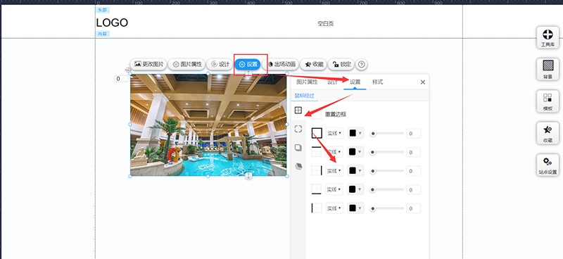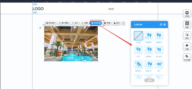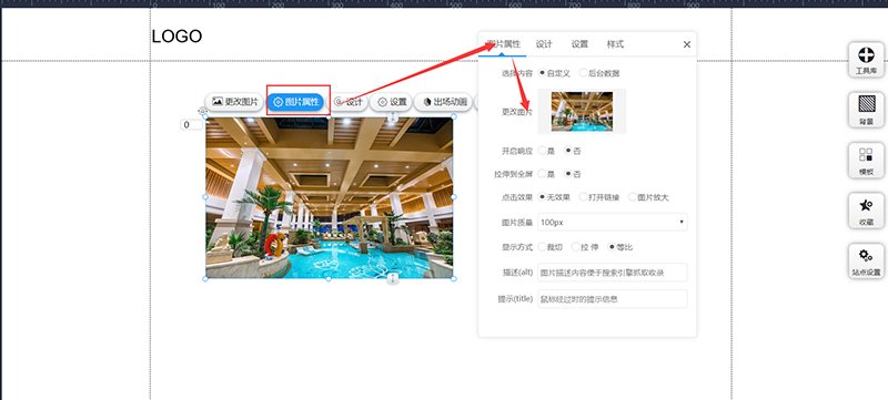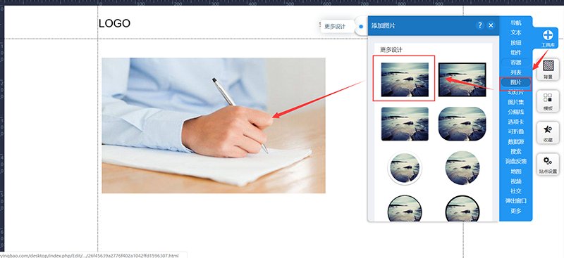 进入网站编辑,找到右上角“工具库”,左键点击“图片”并拖拽到页面中。其中“图片”有很多不同的样式选择,可以根据需求使用,也可以随便选择一个,选择完后再设置样式!