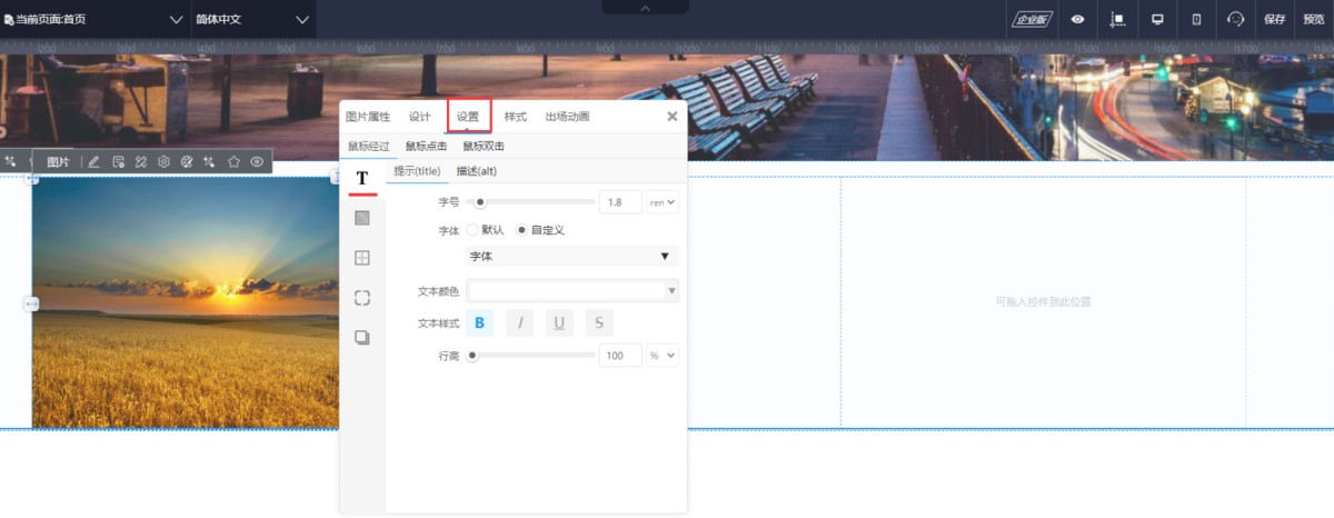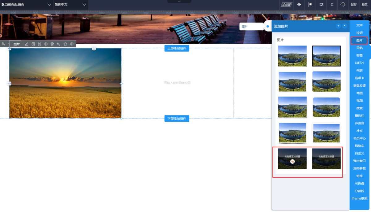 1,图片控件里的最后2个样式,是鼠标经过图片时显示遮罩层的样式。遮罩层上的文本是可以自定义。