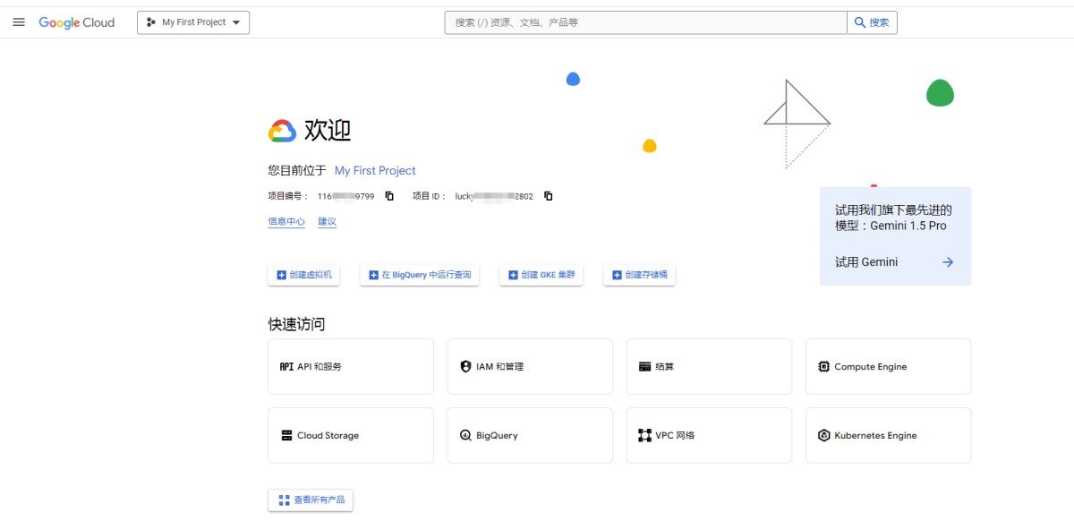 3,访问https://cloud.google.com/,会自动登录谷歌账号,点击右上角的控制台,会进入项目详情页。到项目详情页后,不用操作什么,再回到第2步的reCAPTCHA人机校验界面,项目名称那就会自动获取。