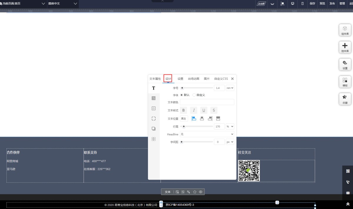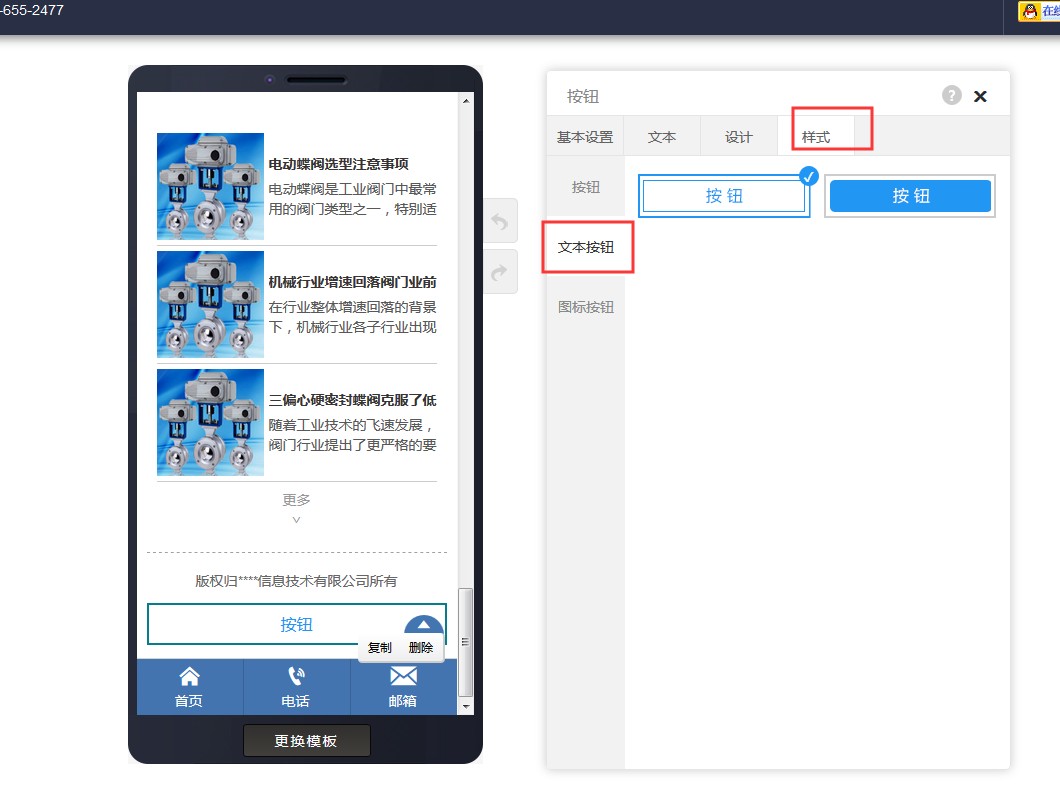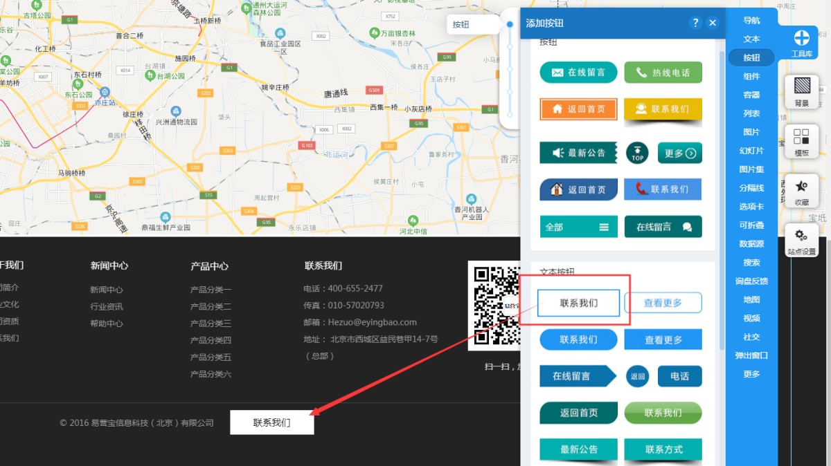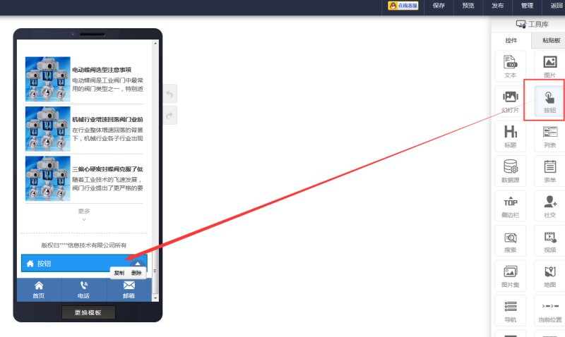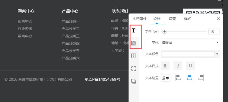 1,在网站底部添加一个文本按钮。