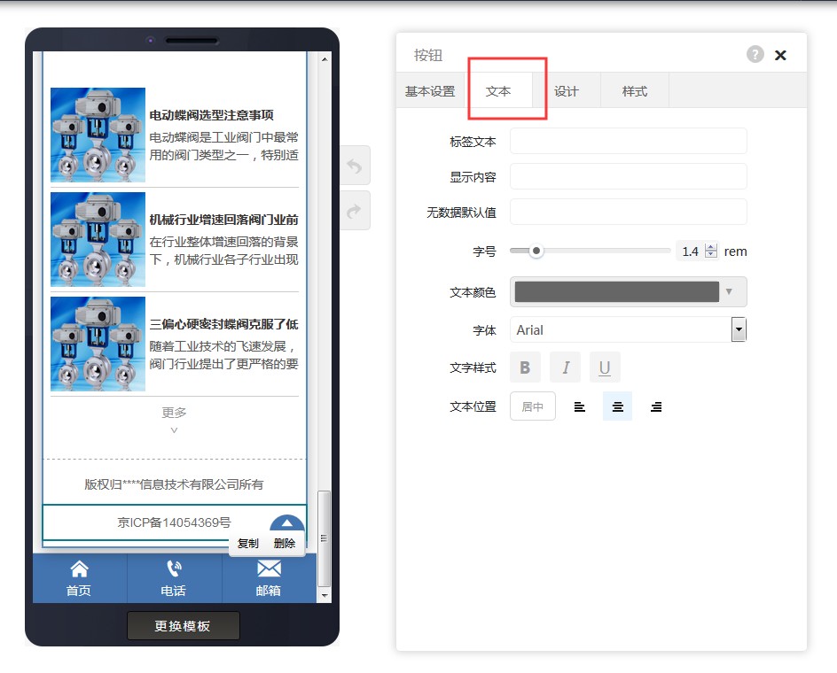 3,在按钮文本里填写ICP备案号。