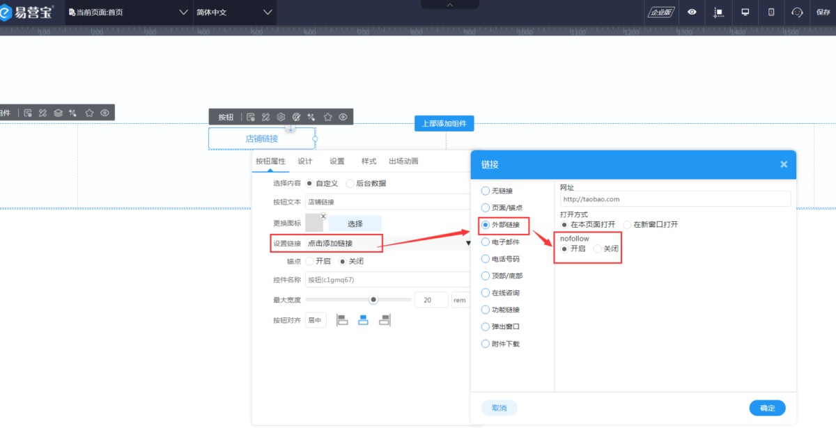 在控件的链接属性里,设跳转外链时,可以设置开启nofollow。
