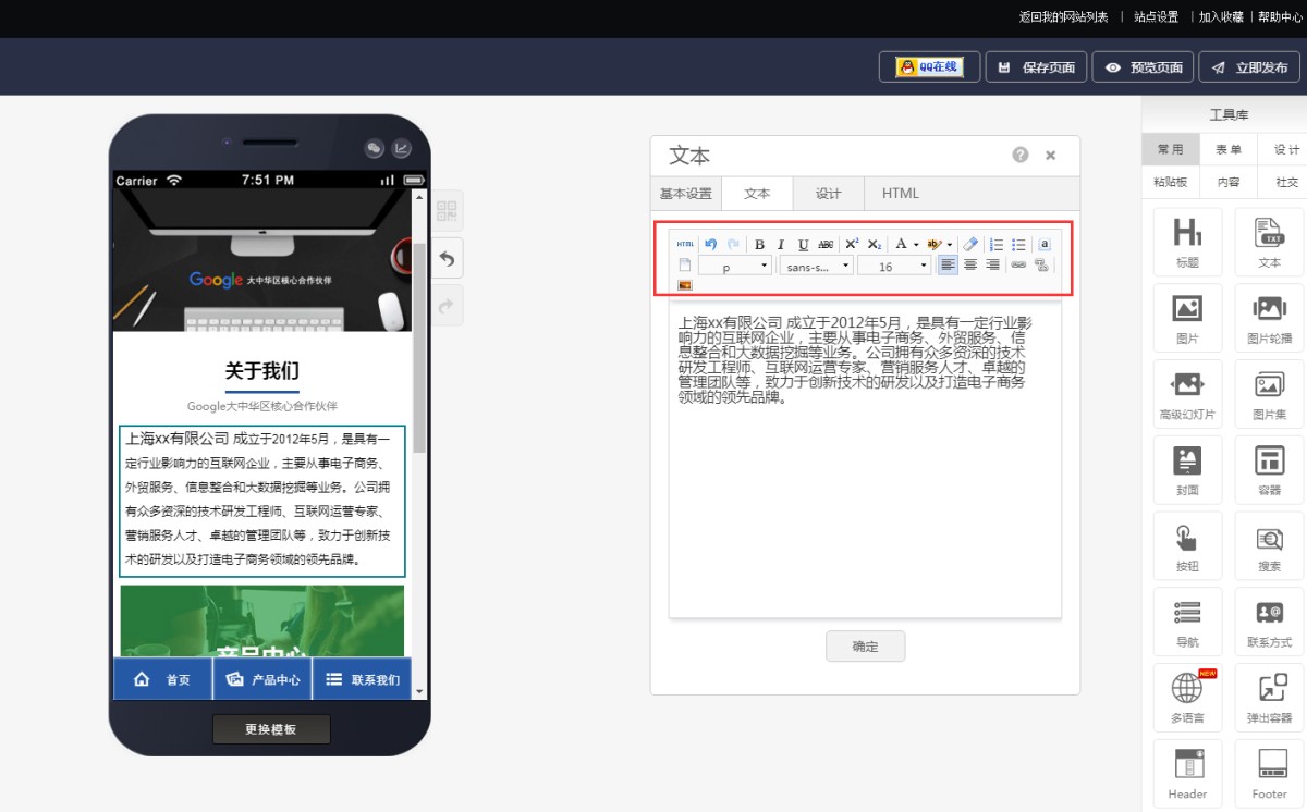 2,双击文本控件或点击文本控件属性-文本编辑,会打开文本编辑器,可以输入文字内容。
